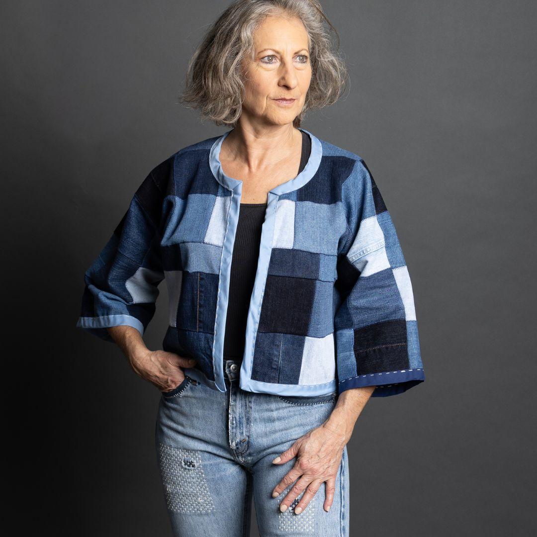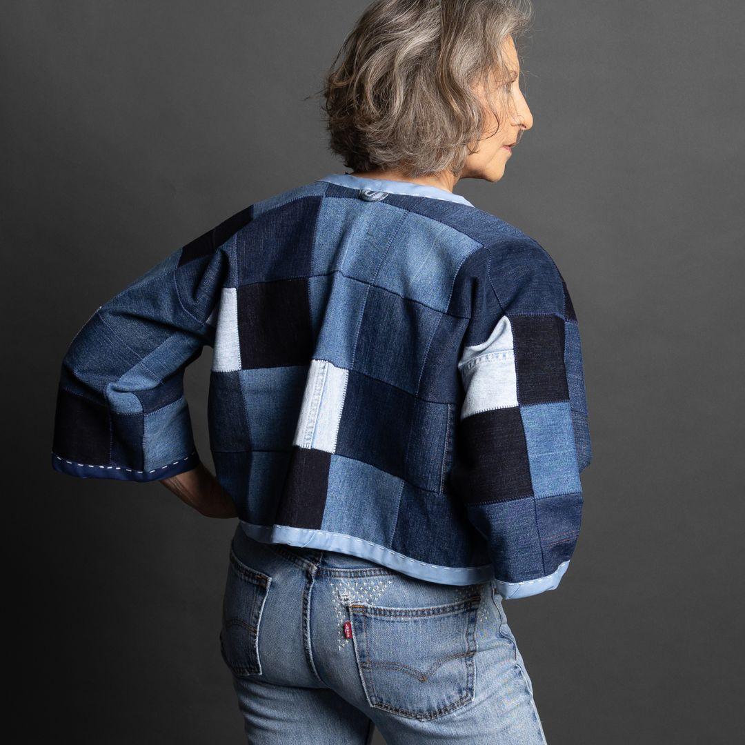The cropped sibling to the Bog Coat, with all the same patchwork soul. Made from salvaged denim, each Bog Crop is a statement in sustainability. Wide sleeves and a boxy fit make it the ideal layer for every season. Finished with sashiko stitching, this piece was made to be worn, mended, and loved.